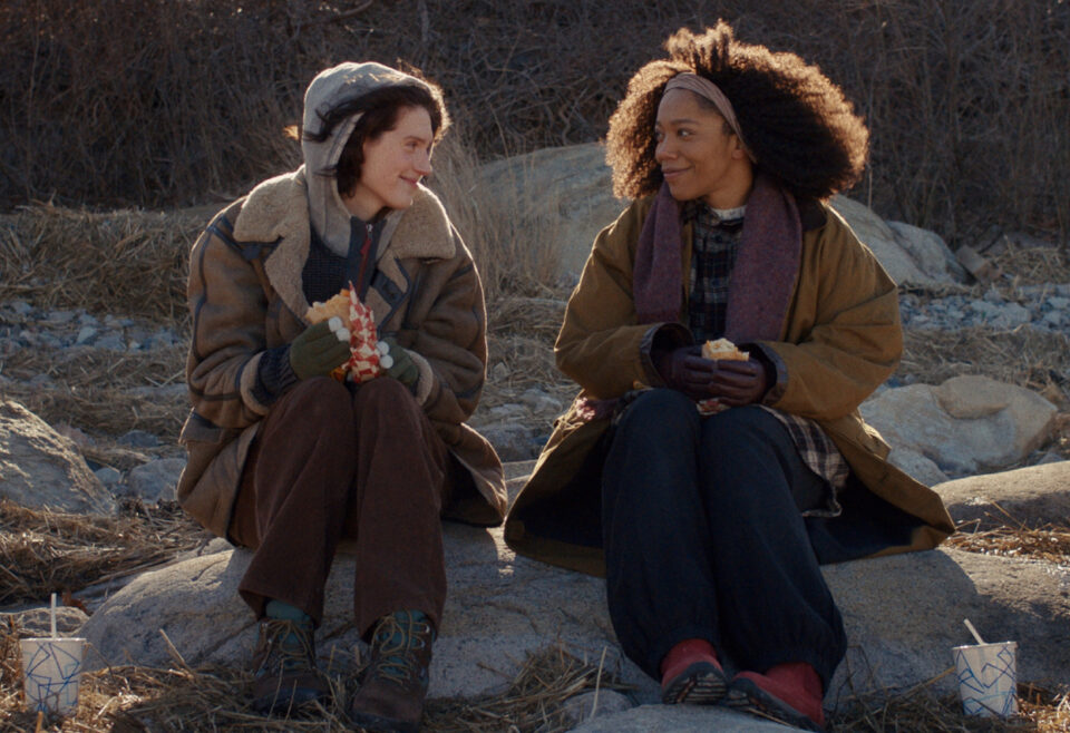 For all these things that Sorry, Baby is, it is also joyfully and unforgettably gay. And I mean that in the broadest sense of the word, including all of our alphabet siblings — our main character, Agnes, very quickly gives a fresh yet familiar monologue on dissociating during sex with men, and goes on to develop discomfort in fixed, gendered boxes, in a way that feels reflective of the feelings non-binary writer/director/actor-playing-Agnes, Eva Victor. Agnes’ lesbian best friend, Lydie, in a 10/10 flashback utters the classic gay-and-doesn’t-know-it line: “I don’t even fuck guys with my eyes open anymore, I just close my eyes and imagine women.” Lydie finds love and ultimately a family in the arms of her non-binary partner Fran (the fabulously named E.R. Fightmaster, yes, really). Lydie and Agnes’ reunion then involves a dinner with two of their gay male classmates, whose sexuality is a non-issue in such a refreshing way. This flourishing of identities exists within the film, as they exist in our lives, without being challenged, and without being mined for plot devices. The characters, like us, have problems and turmoil, but not necessarily related to their gender and sexuality, and that’s inspiring to see represented on screen.