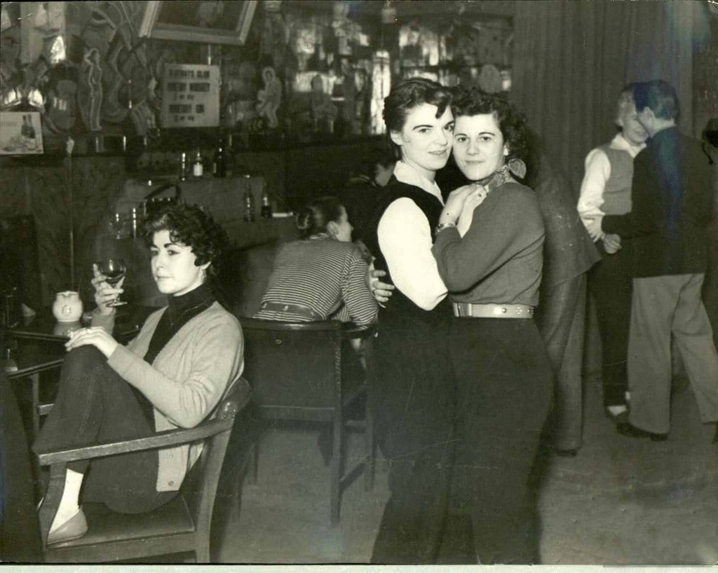 “This image is a snapshot from The Gateways, a lesbian club that was open from the 1930s until 1985 in Chelsea, London. It was a haven for so many British lesbians – a place to be themselves, to find friends, a partner or a one-night-stand, a place of pilgrimage and recognition. As a lesbian fashion historian, this 1953 photograph is particularly meaningful: it’s proof of a place where women could love each other, and where butch identity, in particular (so vilified in mainstream society) could thrive. It wasn’t perfect – nowhere is – but it’s a crucial part of lesbian history in the last century.”
