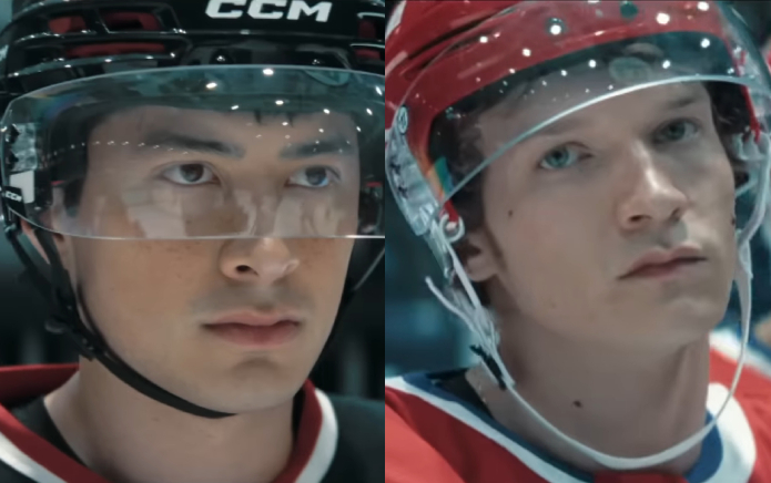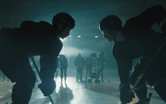 At the start of the trailer, a sports commentator sets the scene by highlighting Shane and Ilya as professional hockey’s most promising players.