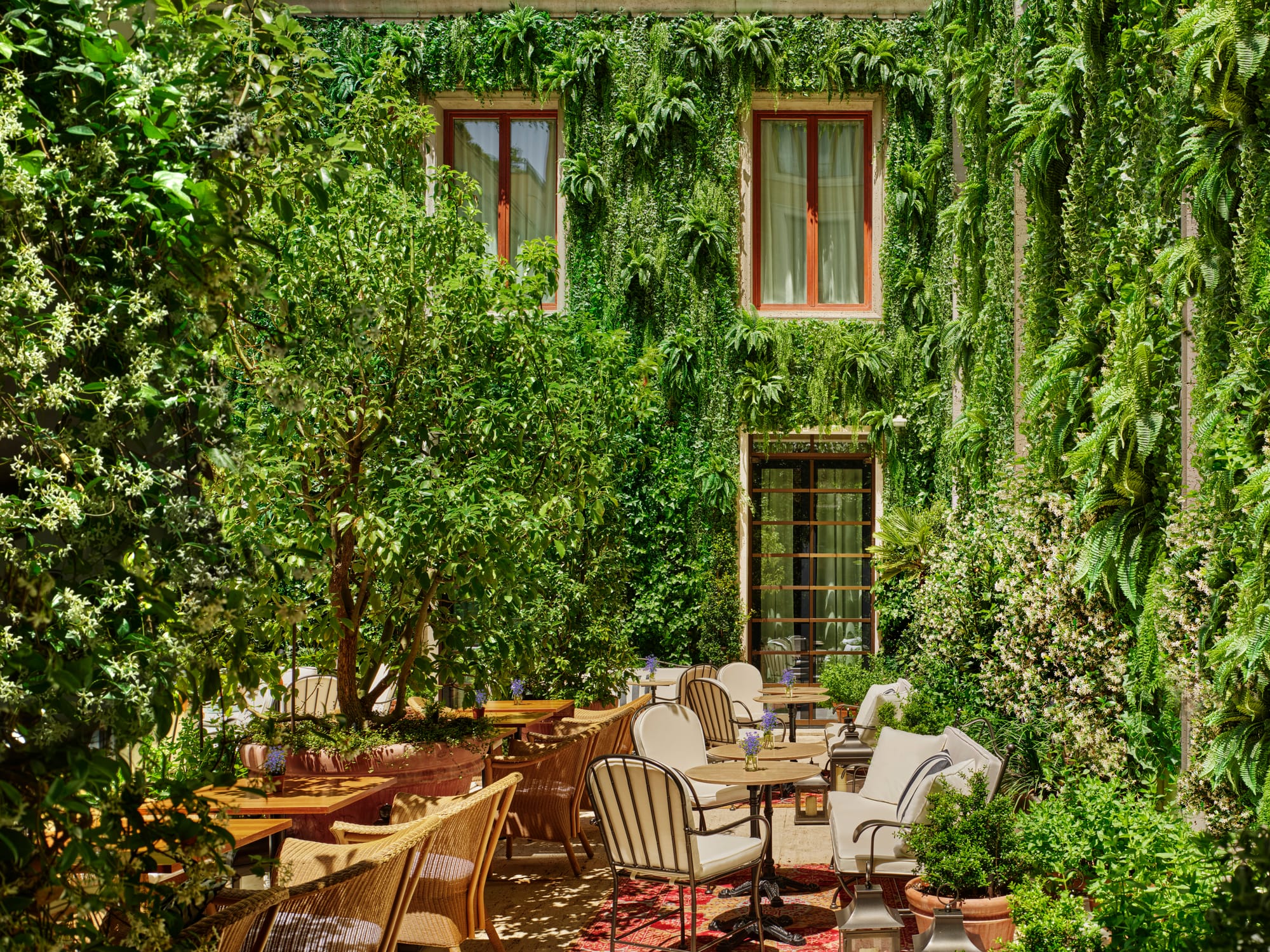 As always with Schrager (the founder of the EDITION brand with Marriott), the foliage is front and centre. The lobby and entrance area lean heavily into that urban overgrown jungle feel, climbing plants spill over the façade and the greenery throughout gives you the sense that you've stepped into some hidden Roman garden rather than a hotel in the middle of the city. It's a signature Schrager move, but it feels particularly at home in Rome where nature and architecture have always been in conversation with one another.