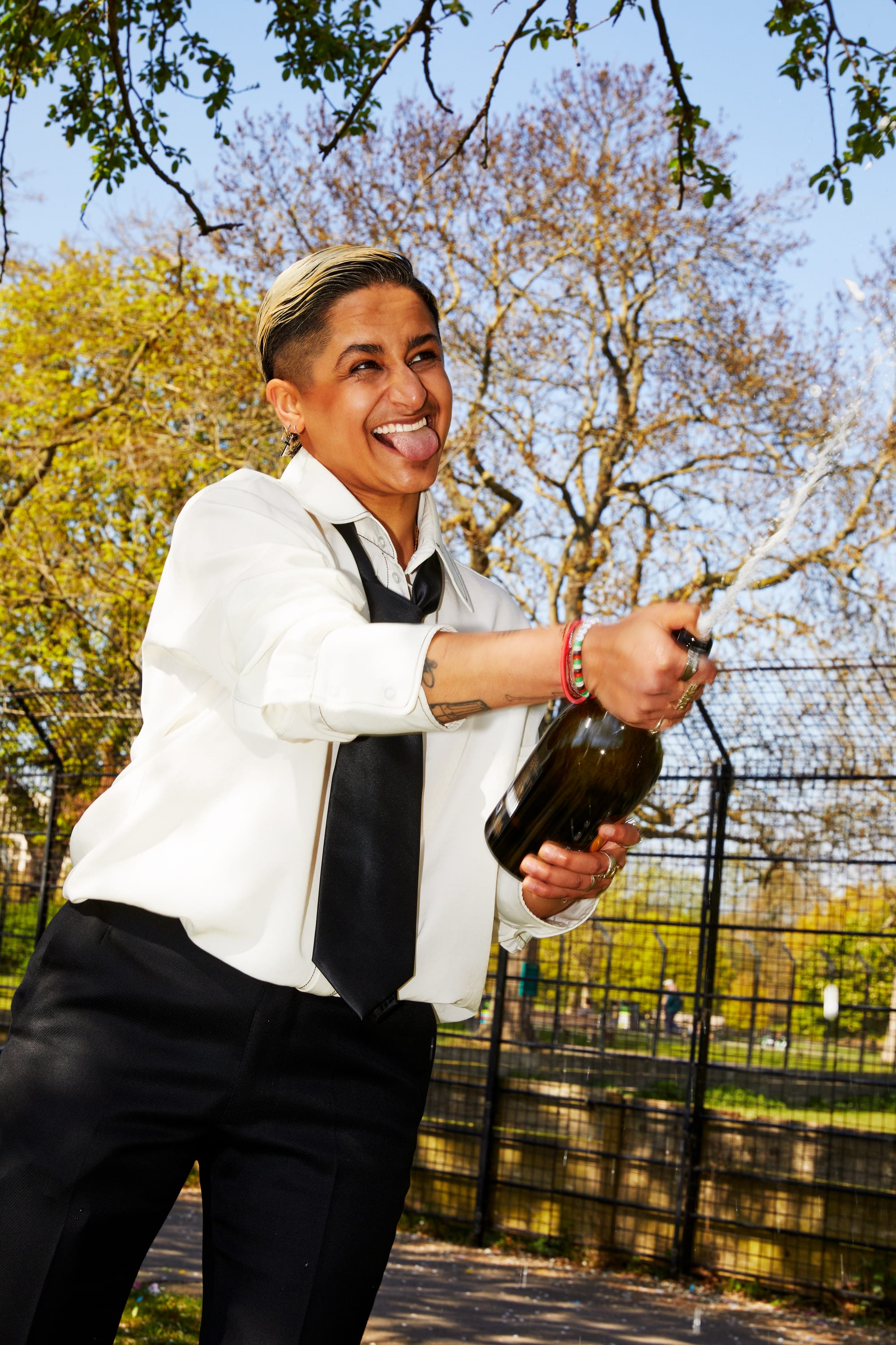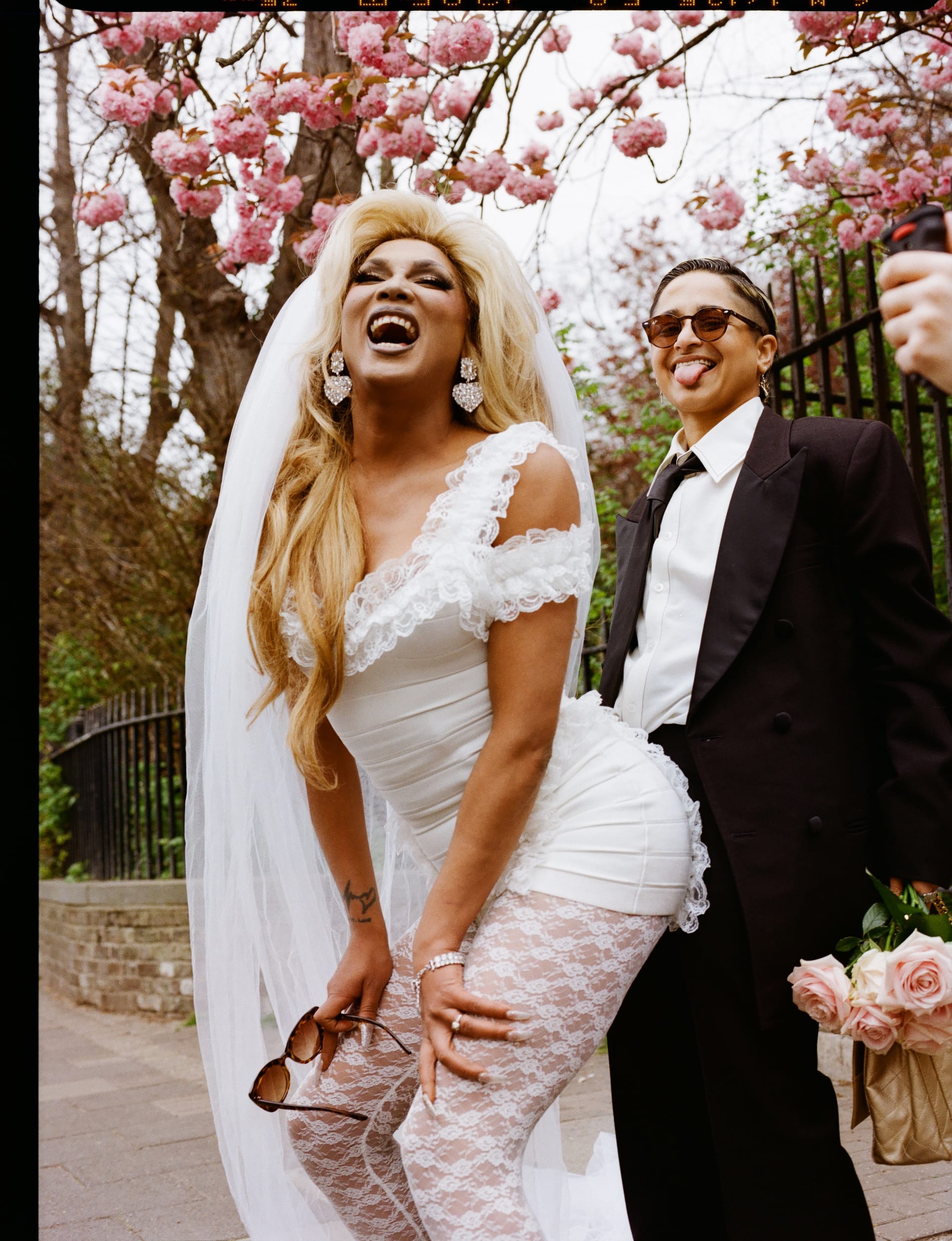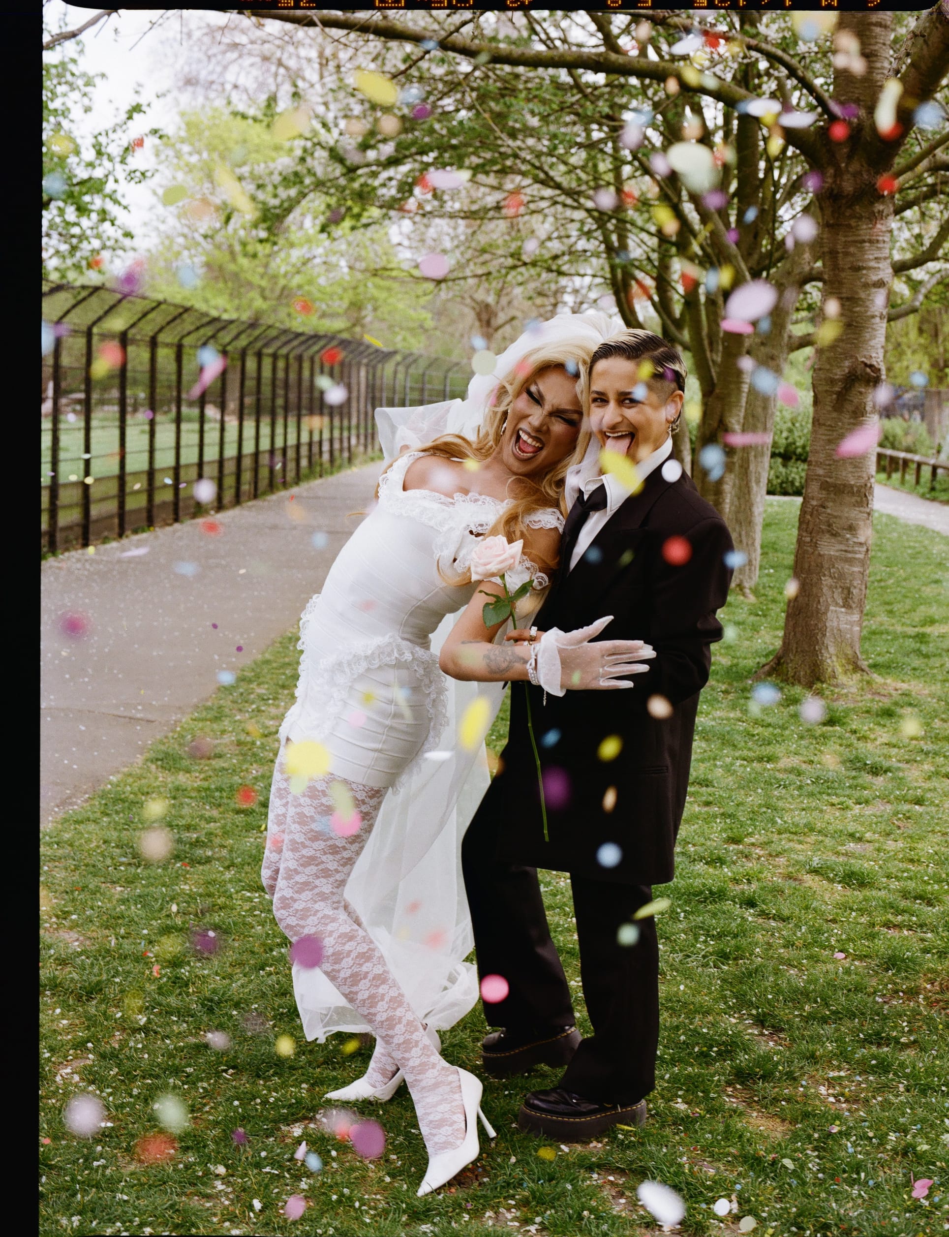 Following the ceremony – which also featured a cake with no jam, more prosecco and Tiara’s surprisingly pitch-perfect impersonation of Cynthia Erivo’s battle cry from Wicked – the happy couple joined the GAY TIMES crew to unwind and reflect on the happiest day of their existence.
