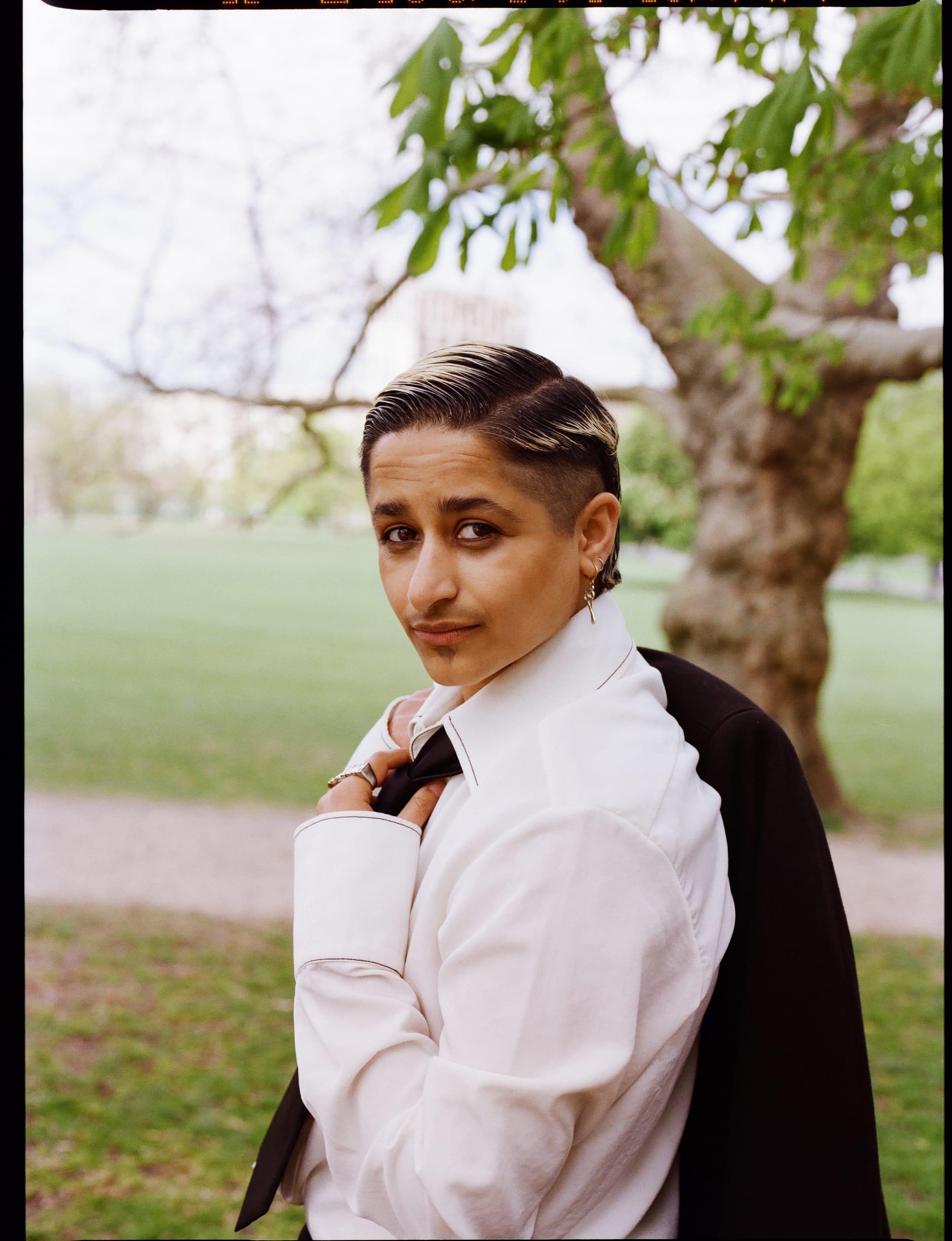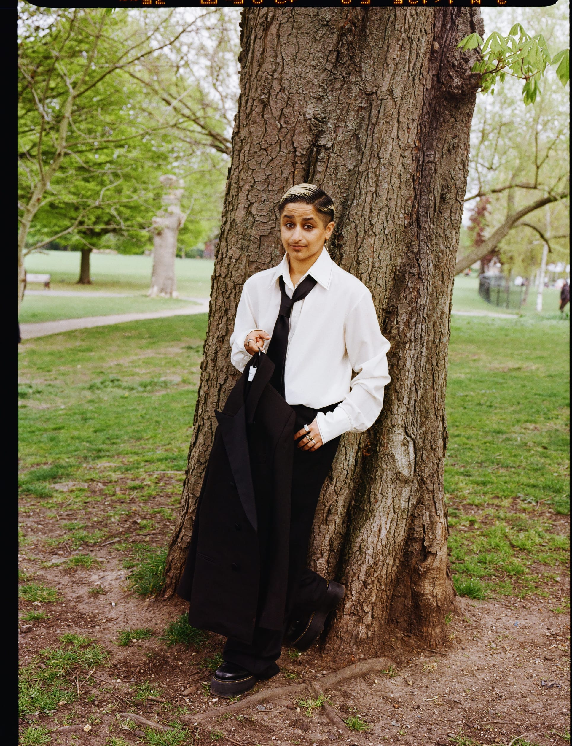 Shivani, now visibly more relaxed in his slightly crumpled tux, has unbuttoned his collar and undone his tie with the effortless ease of a man finally stepping into his heterosexual power. He basks in the golden rays of Clissold Park, gazing at his bride with awe. While he doesn’t say much, his aura says, “This is straightness, and I am winning.” A bottle of prosecco rests gently between his knees. The energy is matrimonial. The vibe? Confused, but committed.